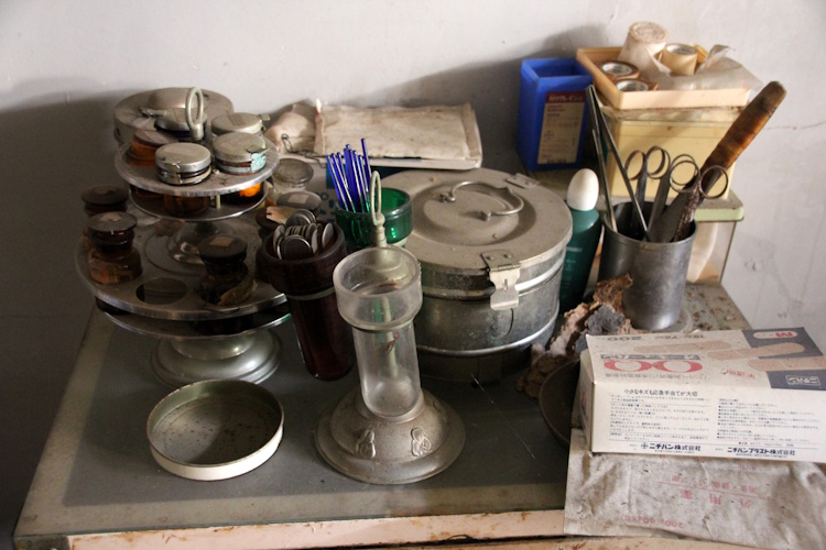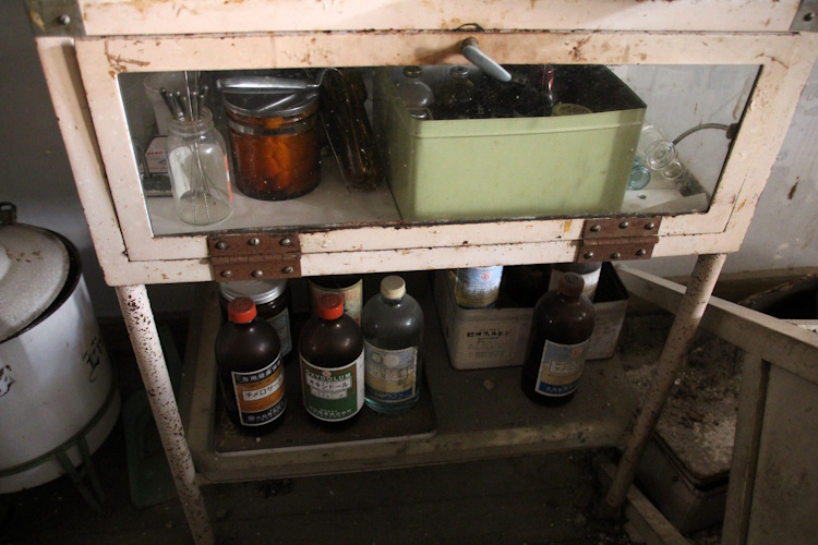この小瓶の入ったスタンドも廃医院でしか見ないですね。